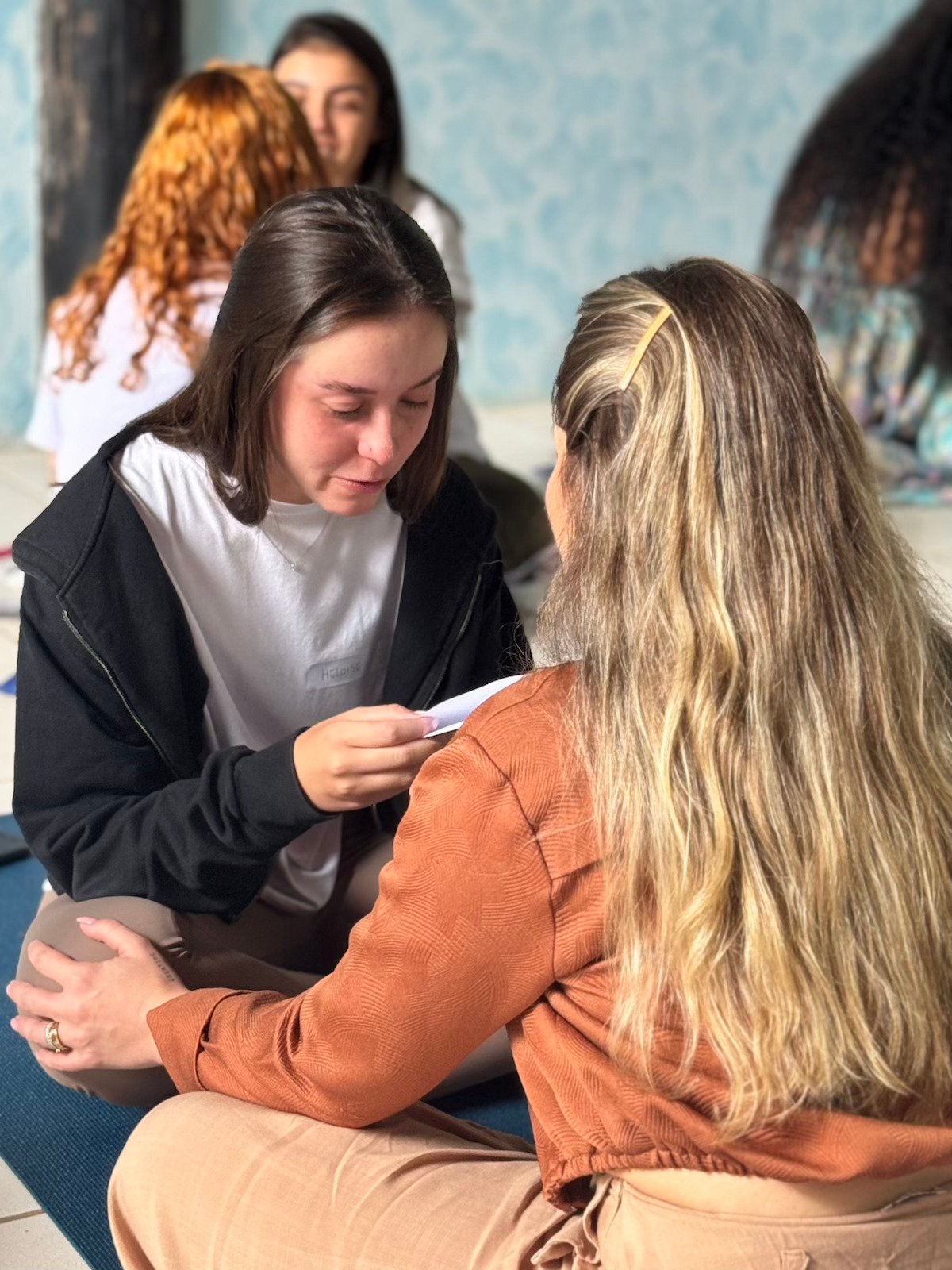 Você não é obrigada a falar nada que não queira. O espaço é construído para acolher silêncio, limites e pausas. Muitas mulheres chegam com receio e descobrem que pertencimento também acontece sem precisar se explicar.