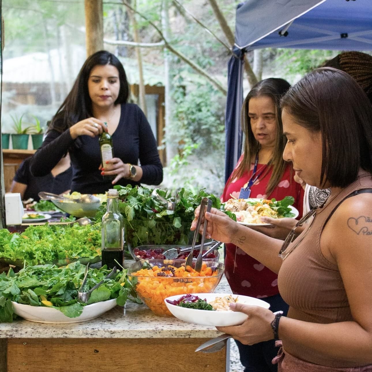 Durante toda a vivência, estaremos envolvidas pelo verde e pelo som da floresta, nos permitindo uma experiência de autoconhecimento e conexão profunda.