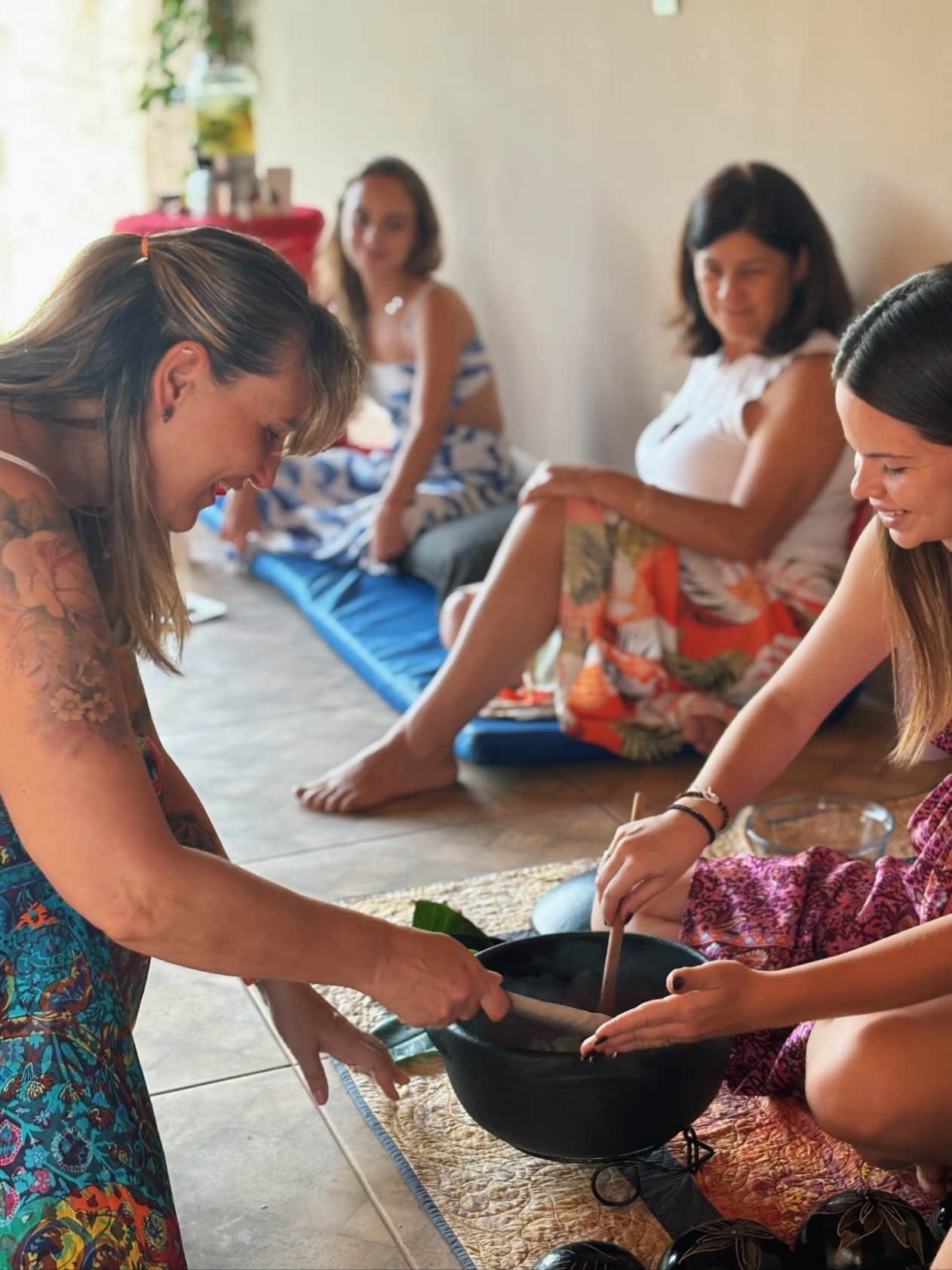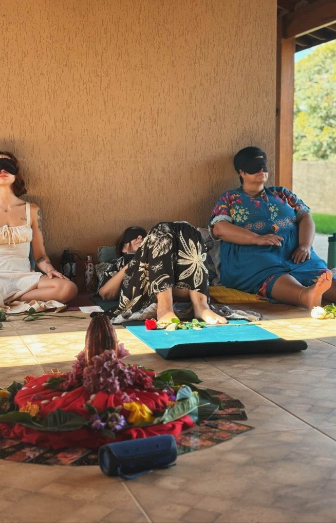 Ao longo da vivência, o ambiente favorece presença, profundidade e segurança emocional, sustentando cada prática com leveza e verdade.